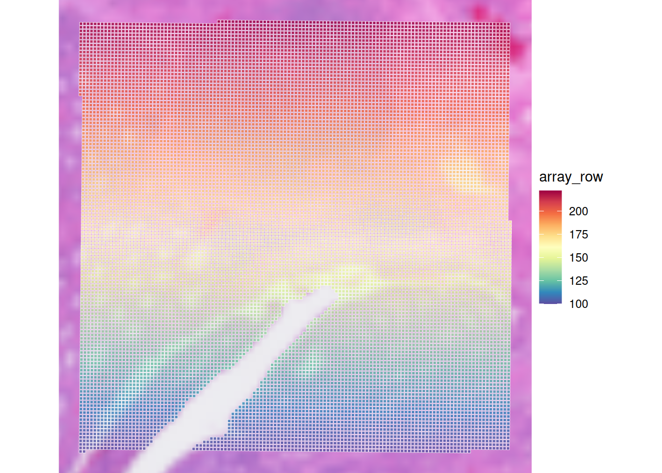 p <- plotVisium(spe, annotate = "array_row", zoom = TRUE, point_shape = 22)