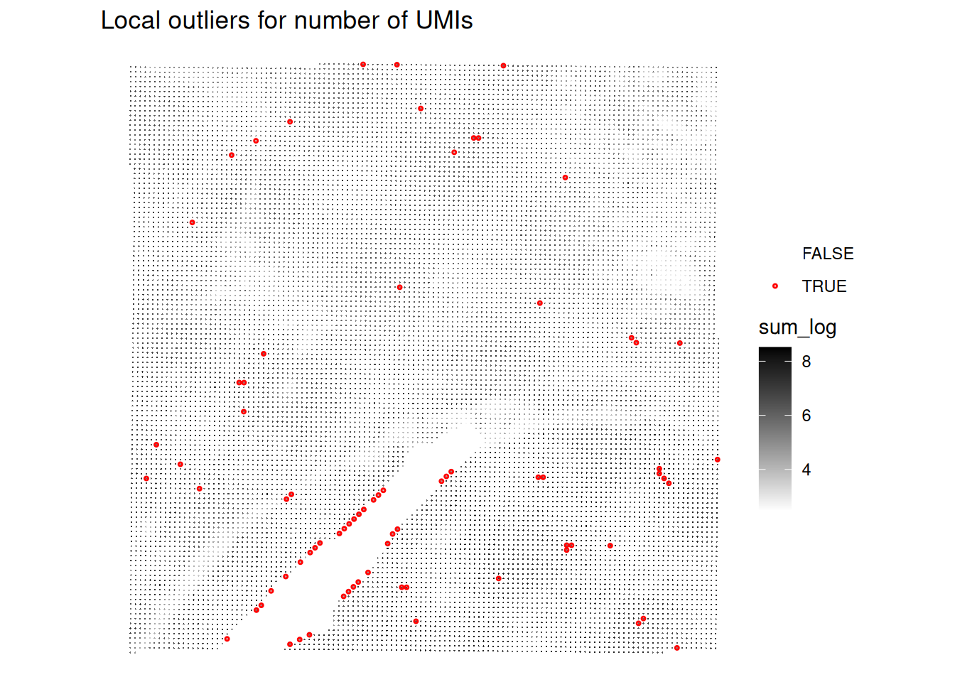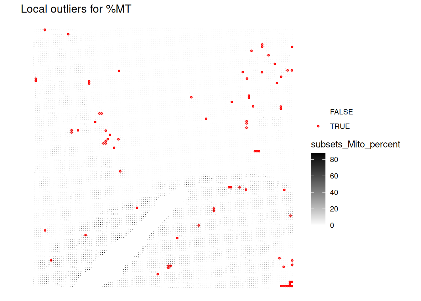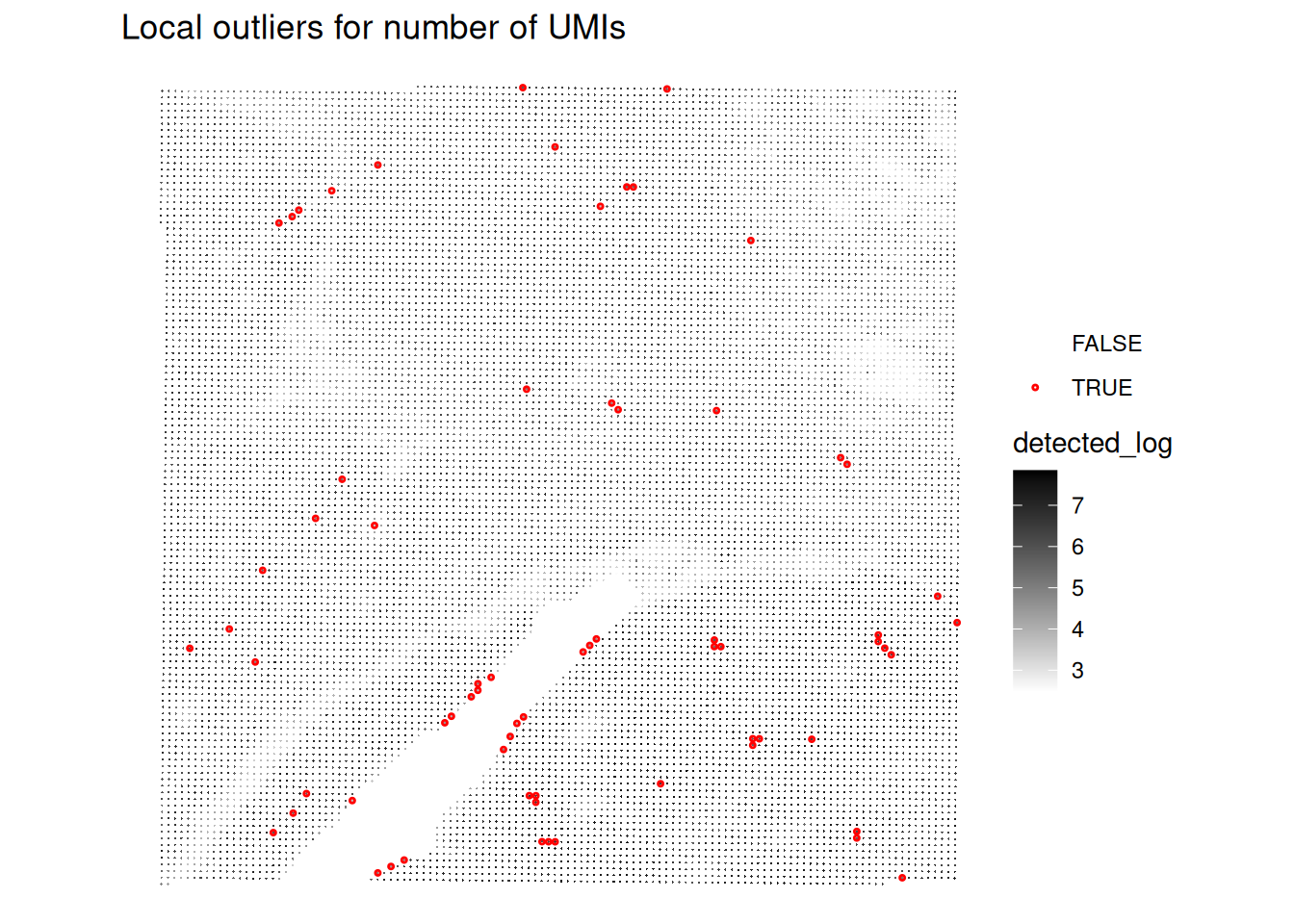 To avoid discarding whole layers of tissues, another approach to identify low-quality spots is to use local outlier detection methods that take into account the spatial context of each spot.