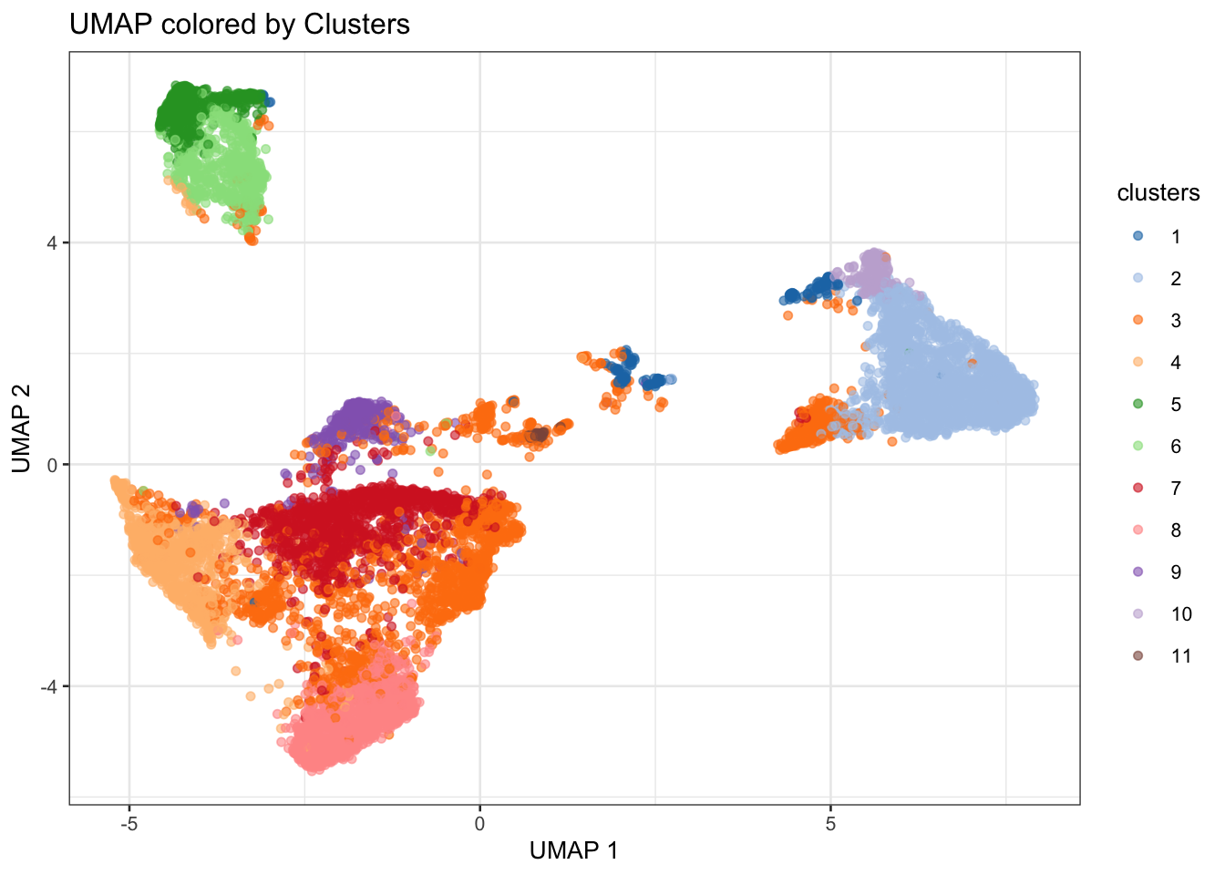 - Visualize the results of dimensionality reduction and clustering in both reduced dimension space and spatial context.