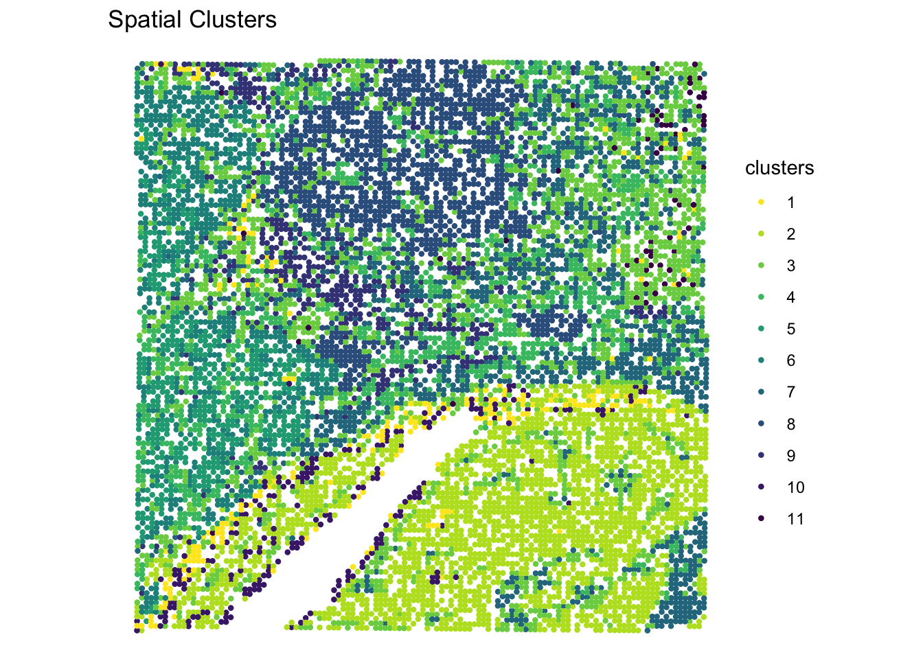 - Visualizing clusters in both reduced dimension space and spatial context is essential for biological interpretation.