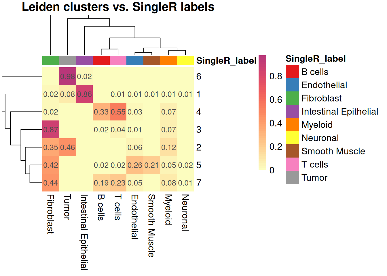 tab_prop <- prop.table(table(spe$Leiden, spe$SingleR_label), margin = 1)