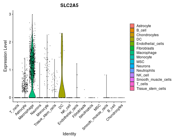 Seurat::VlnPlot(gbm, features = "SLC2A5")